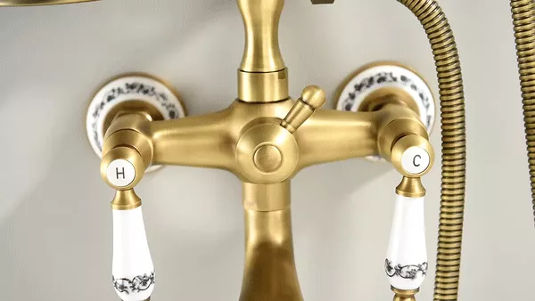 Introducing the pinnacle of bathroom luxury and design – our Dual-Handle Bathroom Floor Mount Bathtub Filler. Crafted for those who appreciate the finer details, this freestanding faucet with an antique brass finish promises to elevate your bathroom’s aesthetic and your daily ritual. The rotating spout and handheld shower head blend convenience with timeless style, ensuring a bathing experience that is as relaxing as it is refined.